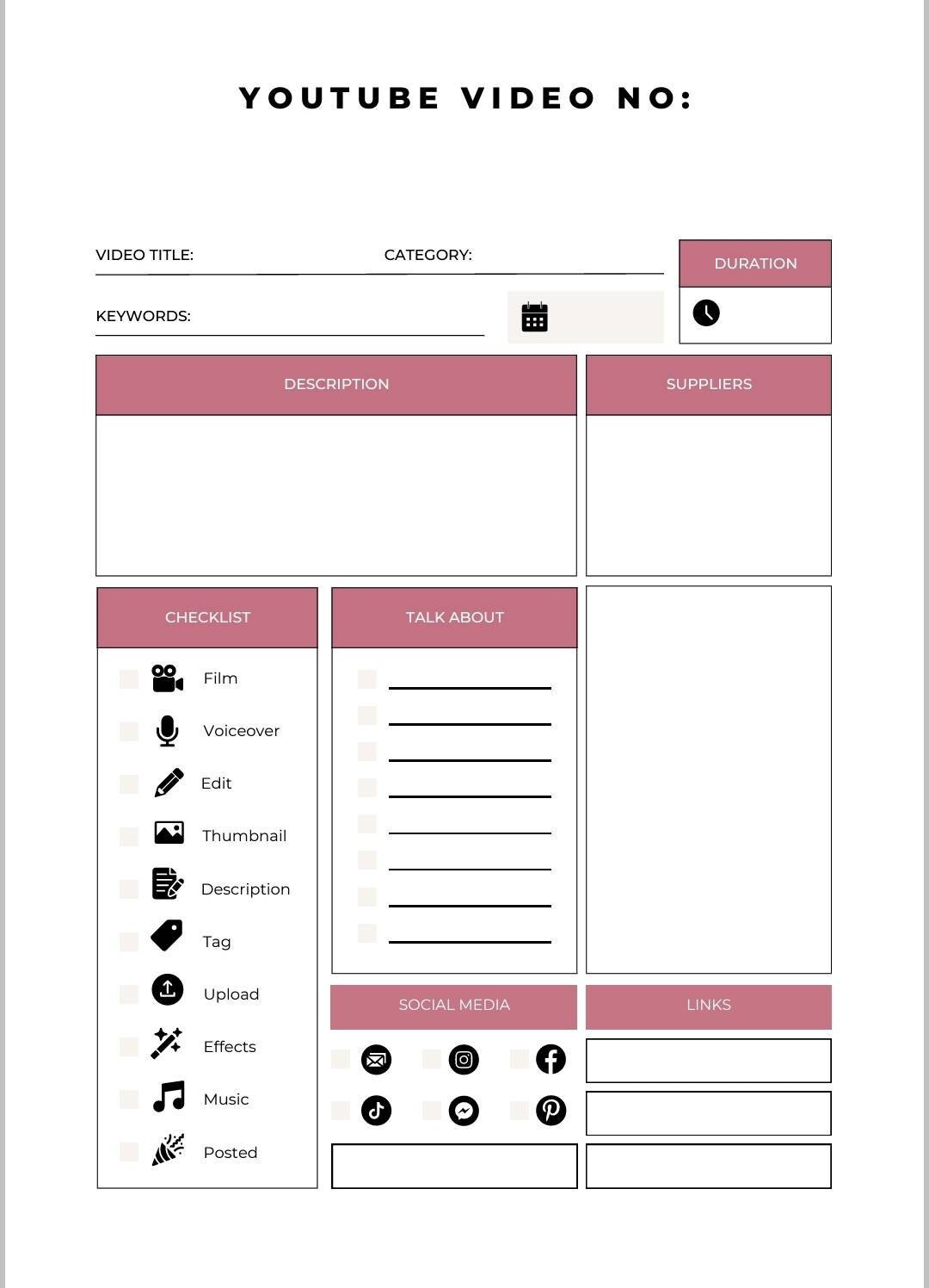 Kickstart your YouTube journey or help others achieve success by offering our YouTube Planner. Download, personalize, and share or sell this invaluable resource to support aspiring content creators in reaching their goals.